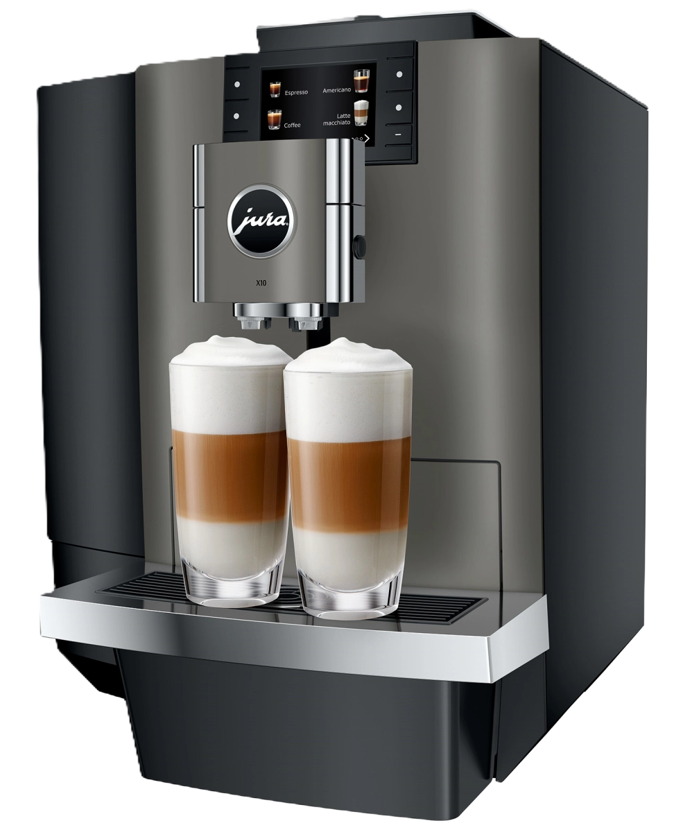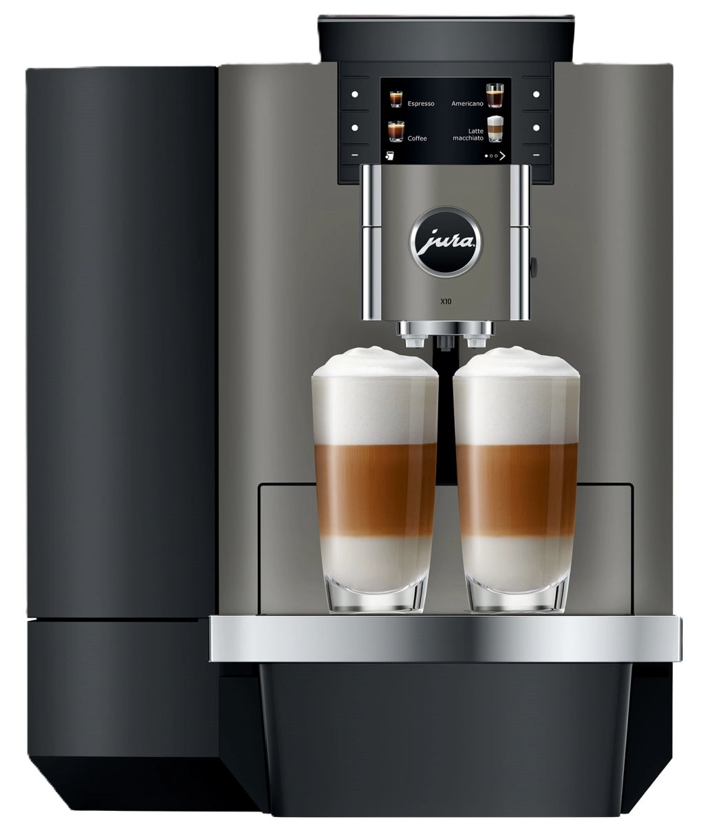 De JURA X10 Dark Inox is een veelzijdige en robuuste volautomatische koffiemachine, ontworpen voor zowel warme als koude koffiespecialiteiten.